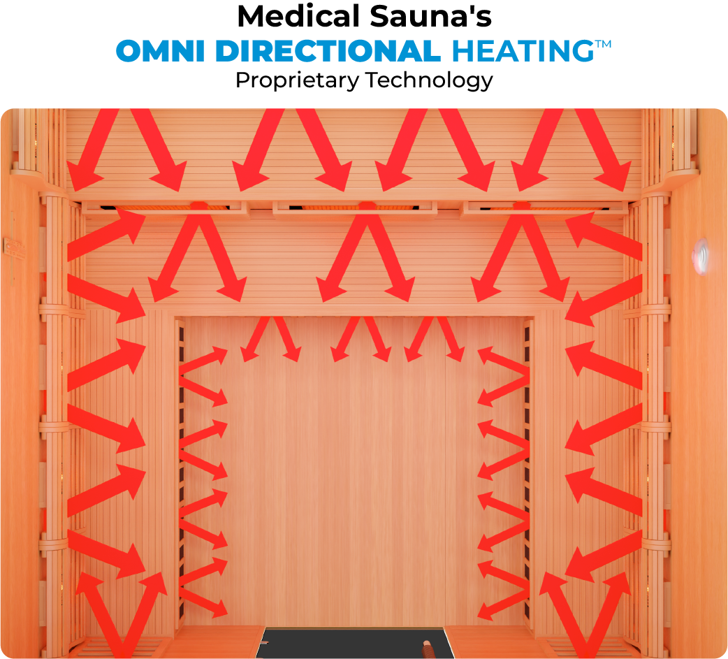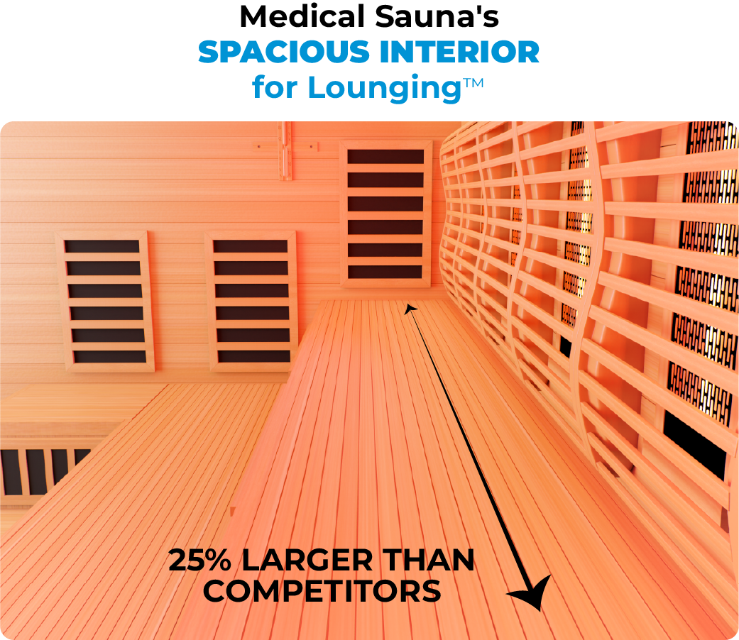 In many saunas, slow heating systems hinder the recommended warm up and cool down rounds essential for hot/cold therapy's health benefits. Medical Sauna™ addresses this with our potent Rapid Internal Heating System™, enablingeffective hot/cold therapy for enhanced muscle relaxation and flexibility.