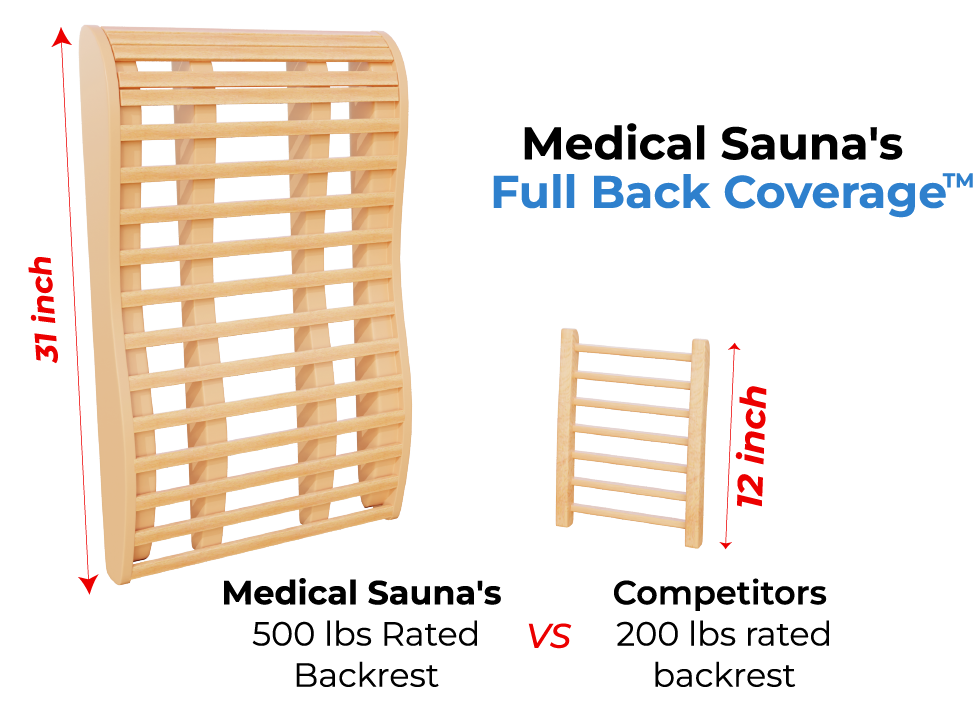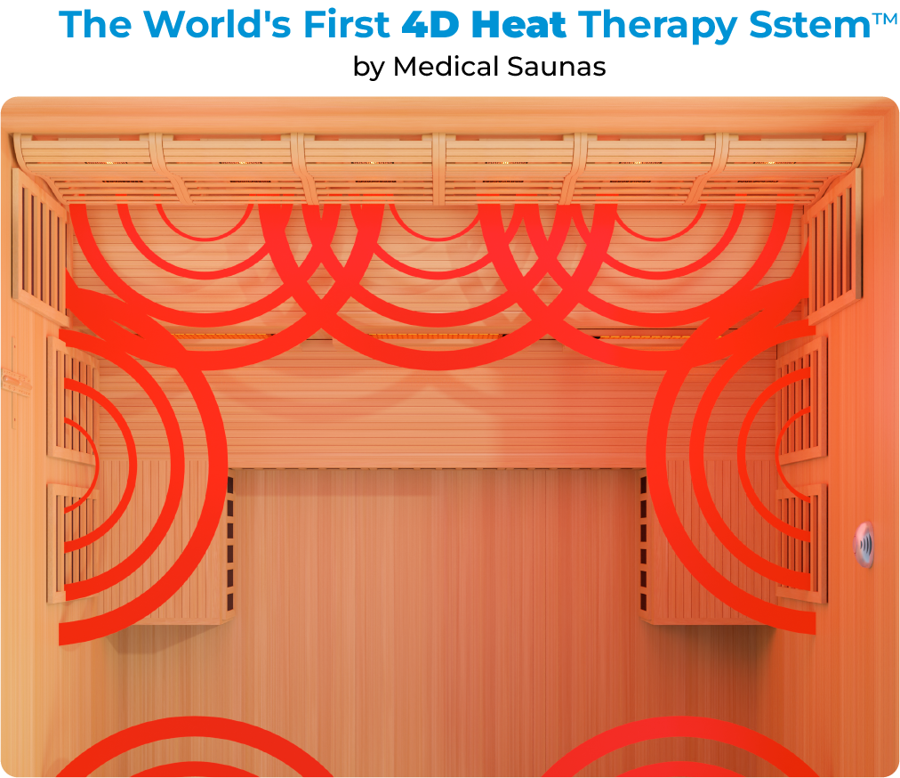 Many sauna companies lack surround heat in their saunas, as it involves developing a specialized motherboard that costs over $700,000 to engineer. However, at MedicalSaunas, we invested the time and resources to manufacture saunas with surround heat, ensuring your entire body is engulfed in heat therapy. Our saunas are equipped with multiple heating elements in the front, back, sides, and even under your legs, offering you a 4D Heat Therapy Experience unseen in any other sauna