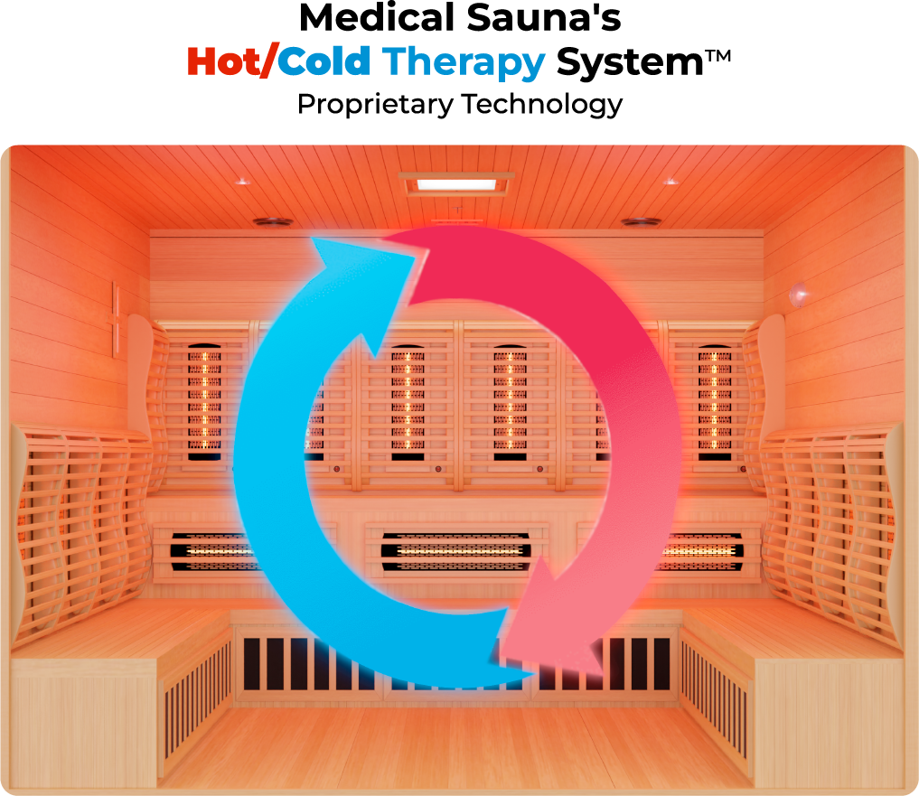 In many saunas, slow heating systems hinder the recommended warm up and cool down rounds essential for hot/cold therapy's health benefits. Medical SaunaTM addresses this with our potent Rapid Internal Heating System™M enabling effective hot/cold therapy for enhanced muscle relaxation and flexibility